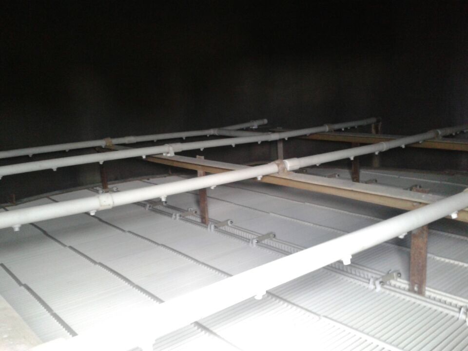 插板式平板式除雾器是根据液滴的惯性、离心力、撞击、重力等原理。烟气通过叶片,含雾滴的气体经若干次改变方向,雾滴在惯性和离心力的作用下,被甩在叶片上,从而实现气液分离,叶片上的小液滴汇集成大颗粒液滴,靠重力落下。设计的特点 1、重要特点: 叶片采用新复合材料制作而成的,、耐酸、耐碱、lv离子、、表面光滑等优点。并能在150℃烟气温度工况下连续使用。 2、设计参数: 出口雾滴含量≤75mg/Nm 阻力损失≤100Pa 烟气流速:2.5~5.0m/s(空塔流速) 除雾器承受连续使用温度≤150℃ 除雾器承重力≤400kg/m 插板式平板式除雾器系统结构 1、插板式平板式除雾器系统由两层平行除雾器叶片及三层冲洗水管组成。一层除雾器除去粗颗粒雾滴,二层除雾器去除细颗粒雾滴。 2、冲洗水系统包括:喷嘴、管道、管卡等。 除雾器冲洗水管:采用碳钢或不锈钢制作、喷嘴采用316L。冲洗管布置形式为 除雾器上下侧和二层除雾器下侧。冲洗水喷淋重叠率200百分之,除雾器低阻运行。